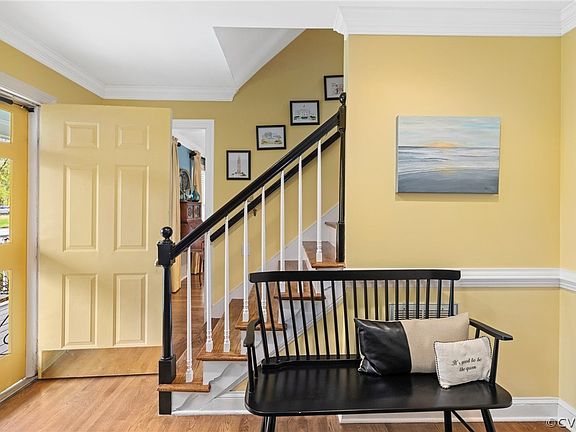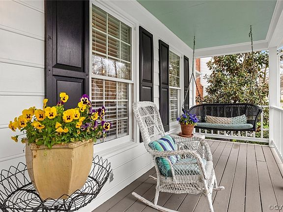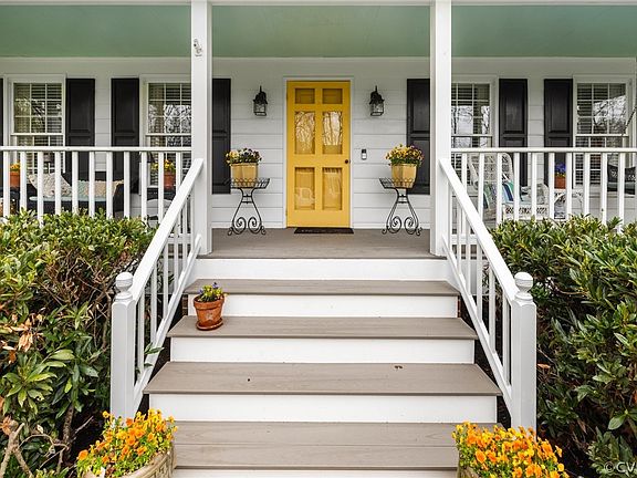 Gorgeous home with beautiful classic elements: white siding with black shutters and a full front porch overlooking a spacious yard in a tree- lined neighborhood with 5 bedrooms, 3 1/2 baths, & a fenced rear yard! There are hardwood floors on both the 1st & 2nd floor. Spacious family room w/ white painted brick gas FP & beamed ceiling. Kitchen w/ bay window nook, granite countertops w/ breakfast bar overhang, white cabinets, double oven, digital screen double door Samsung refrigerator, & 2 pantries. Large dining room. 1st floor BR/ playroom/office w/ bookshelves & full bath. Rear hallway w/ powder room w/ antique chest housing sink & previous location of W & D in oversized closet ( this could be converted back to laundry closet). Primary BR w/ HW floors, large WI closet & private bath w/ new granite countertop w/ 2 sinks & shower. BR#3 w/ HW floors, fan w/ light, double closet, & access to walk up attic with lots of storage space. BR#4 w/ HW floors, built in countertop, & washer & dryer in closet. Full bath #3 has new light gray vanity w/ storage & open lower shelving & marble countertop. Spacious BR#5 has neutral carpet, double closets, a fan w/ light, & 3 under eave storage access areas. Numerous windows w/ 2" blinds in all rooms make this home bright & cheerful. Fenced rear yard w/ deck & patio. Pretty trellis entry to rear yard from extended asphalt driveway. Front & rear yard irrigation. Roof replaced 2019. Metal roof over full front porch. 2 zone HVAC replaced in 2020 & 2023. Stainless appliances replaced in 2019. Propane tank for gas FP. Incredible location in Short Pump! Minutes to mall & shopping! Excellent Henrico County Schools including Gayton Elementary. Close to Deep Run Park & interstates!