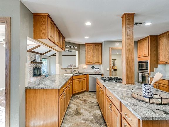 Price Improved! Beautiful remodeled home in Midwest City. Close to Tinker, shopping and restaurants. This 3 bedroom home has an open floorplan with a beautiful fireplace and high ceiling. The kitchen is a chef's dream! Built in Jenair cooktop, oven and microwave. Tons of counterspace and a huge pantry that give you so many options for storage. This is truly an entertainers dream come true. You will enjoy your breakfast nook and dining room. Large primary bedroom with remodeled bathroom and two closets. Split floorplan allows for privacy for everyone. Guest bathroom has updated vanity and countertop. Most of the updating has been done for you. Converted garage is perfect spot for your pool table or bar. Backyard oasis is perfect for fall nights and enjoying the outdoors. Outdoor storage building and concrete sidewalks around the entire home. This home also has a whole house generator so you don't have to stress about losing power.