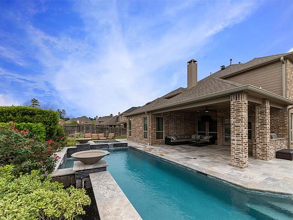 Stunning home impeccably maintained w/customized upgrades! This BETTER THAN NEW home boats sparkling pool, spa, outdoor kitchen, extended patio, & lush landscaping! Interior features gleaming hardwood floors, soaring ceilings, gorgeous stone fireplace, upgraded lighting, & custom draperies. AMAZING kitchen w/stainless appliances, large eat-in island, double ovens, 5 burner stove top, deep oversized sink, butler's pantry, endless storage, & huge walk-in pantry! The open floor plan has walls of windows allowing natural light to fill the home. Escape to your private master retreat w/spa-like bath & soak in the garden tub or under the rainfall shower. Second guest suite is downstairs. Additional 3 bedrooms up (one w/private ensuite bath, & the other has a jack-n-jill layout). The game room & media room have a kitchenette w/half bath to make entertaining a breeze. Upgraded utility w/barn doors, custom cabinetry, sink, & more! Zoned to top Conroe ISD schools. MUST-SEE!