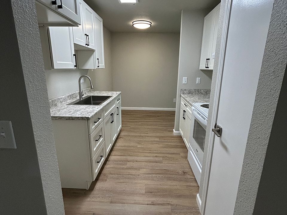 This upstairs back of building unit has been renovated from top to bottom with new flooring, new refrigerator, new cabinets, new plumbing and electrical. Also has upstairs deck and includes one designated covered parking space and a private locked storage closet. Close to Coddingtown, Whole Foods and 101 Available 11/15/2025 Owner pays for water. Tenant pays their own PGE and trash. 12 month lease required.