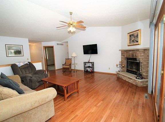 Enjoy the nature in your backyard! Open floor plan Ranch with rear wooded yard backing up to the Boone County Conservation area & Kishwaukee River. Great room with gleaming hardwood floors, fireplace & cathedral ceilings. Remodeled kitchen with new appliances, cabinetry with soft close drawers and doors, pullout shelves, quartz countertops, under counter double sink, tiled backsplash, bayed eating area, pantry, breakfast bar & ceramic floor. Remodeled 1st floor laundry. Large Master Bedroom with remodeled private bath with new cabinets, counter tops, double sinks, walk in shower, walk in closet & large bayed window of view of the beautiful professionally landscaped backyard. 2 other nice sized bedrooms on main floor with new vinyl wood floors. Second remodeled bathroom with walk in shower, tile flooring. Partial Expose Lower level with 3 windows, finished basement with large recreation room with electric fireplace, wet bar with mini fridge, ice maker, wine rack, full sink, microwave, same cabinets and countertop with backsplash as kitchen. Another full bath and 4th legal bedroom with large closet are also in lower level. Huge storage area rounds out the lower level. Composite deck off of great room. Landscaped yard, large stone patio with built in fire pit, bench wall. 8x10 resin storage shed April 2021. Furnace December 2017, Roof July 2016, Hot water heater 2016.