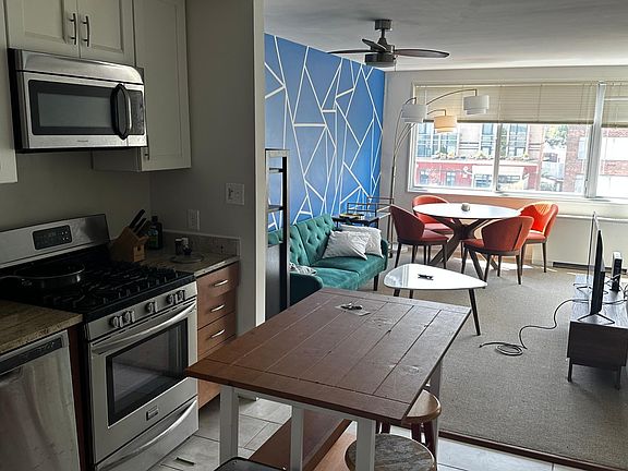 FURNISHED Jr 1-BR apartment in the beautiful Woodley Park Neighborhood. Steps from Red Line station and National Zoo, and just a short walk from shopping, dining, and nightlife in Adams Morgan and Cleveland Park. All utilities included in rent - gas, water, electric, heat. Fully updated appliances, including gas stove, dishwasher, and modern renovated bathroom. Central heating and AC, Laundry in-building. Building is an 8-story condo with rooftop deck, which boasts an impressive view of the city skyline as well as fitness center and pool. No pets. Fully furnished apartment! All items pictured, including bed, sleeper sofa, television, dining set, work desk, and kitchen island. All utilities included - Heat/AC, electric, gas, water. Only thing you need to handle is internet. 1yr lease with 1 month security deposit. Renter is responsible for damage to apartment fixtures beyond normal wear and tear left at end of lease. Building prohibits smoking and pets.