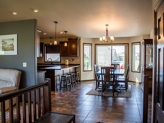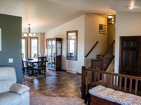 Beautiful Home In North Bismarck near Legacy High School with a walk-out lower level! This 4 bedroom, 3 bathroom home has 3 bedrooms on one level and exterior LP Smart Siding. Kitchen has stainless steel appliances, Maple cabinets, lots of counter space, and custom glass pantry door. Dining area leads to a large 14x18 maintenance free deck with glass railings. Upper level has 2 bedrooms, full bath with double sinks and the Master Suite. Your Master Suite includes: a walk-in closet, additional 6 ft closet, master bathroom with double sinks and a 6' tub. The lower level features the family room with a walk-out to the yard from French doors, additional bedroom, 3/4 bath, and the laundry room with an additional door leading to the oversized triple garage. Rec room has tiled flooring and a custom wet bar with room for 4 beverage refrigerators and 1 additional appliance. The heated/insulated garage has hot/cold water, floor drain, and is over 1,000 sqft! Outside is a large yard with 2 trees and a extra parking pad. See this house today; make it your Home Tomorrow!
