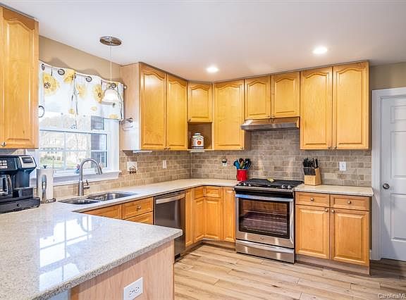 Charming brick home with master on main! This home has been immaculately maintained with many recent upgrades. Roof replaced in 2016. Main level AC replaced in 2017. In 2019 the home was upgraded with new stainless steel appliances (5 yr transferable warranty), gas or electric range, new granite counter tops & tile back splash, and new LVP floor in kitchen, master bath, and upstairs bath. In 2020 the home received new vapor barrier and insulation, new upstairs heating/AC system, new gas water heater and vent-less gas fireplace logs with remote. Home also has invisible fence with collars available, new hardware on doors, new kitchen faucet, new light fixtures in kitchen and dining room and an organizational system in garage. Over-sized master suite with walk-in closet and large bath. Upstairs features two additional bedrooms and a bonus room that can be a fourth bedroom. Corner lot with covered rocking chair front porch. The back yard has a patio, mature tree and beautiful landscaping.
