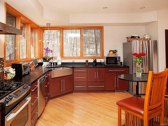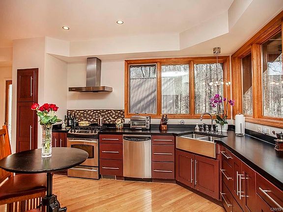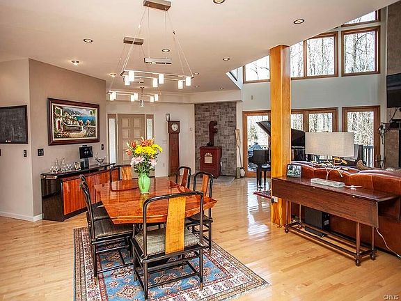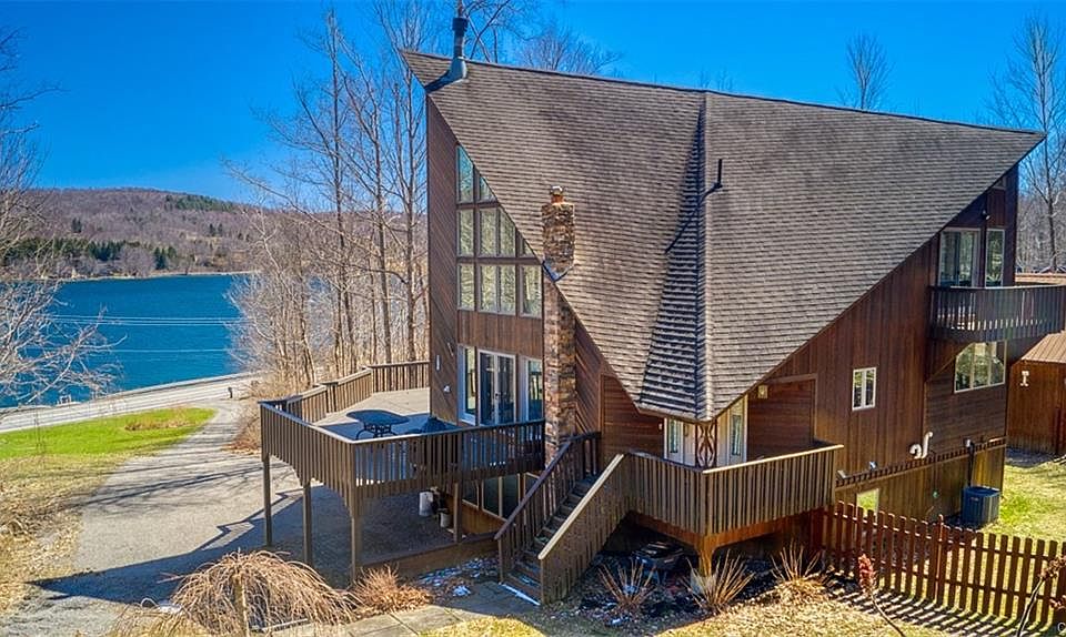 Opportunity knocks!!! 300 ft of prime Tuscarora Lake frontage... wonderful A-Frame style home w/ fabulous lake views. The house sits on 2 Private acres w/ additional state owned acreage of forever wild land beyond the backyard. A Perfect place for hiking, cross-country skiing or bird watching. There is also a 2 car oversized detached garage w/ a finished 2nd fl currently used for storage but could be a possible office, workshop or apartment space. Inside the house, the 1st level includes two bedrooms and a spacious full bath. Upstairs the main level is the ultimate wow factor with its floor to ceiling soaring windows and sunrays that dance on the gleaming hardwood floors of the expansive great room. Included in the great room is a wood burning fireplace for ambiance and a coal stove for a 2nd inexpensive heating option (there is a forced air furnace & central AC) There is also a modern kitchen w/ granite counter tops and a half bath. The lofted master bedroom has beautiful lake views a large walk in closest and stylishly tiled master bath w/ separate shower and tub areas. Outside enjoy dinners w/friends or morning coffee on the various decks. A house for all seasons. 2021-07-02