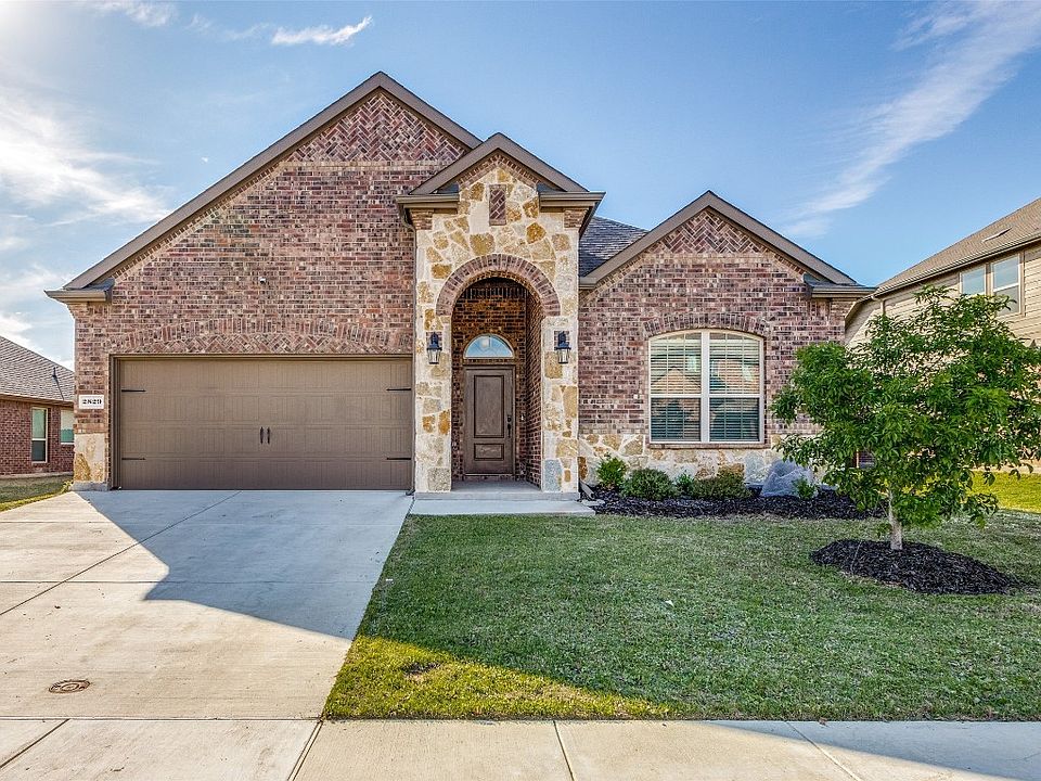 Now available this beautiful home in highly sought after Silverado community. Walking distance to HOA amenity center and Jackie Fuller Elementary. Open floorplan with 4 beds, 2 baths, and a 2-car garage. Stunning brick and stone exterior, formal entry, and a guest bedroom perfect for a home office. The kitchen boasts stone counters, stainless sink, gas range, venting microwave, large pantry. It opens to the family room featuring a gas log fireplace and ample windows. The spacious primary suite offers barn doors with an ensuite bath with separate tub and shower, two sinks, and a large walk-in closet. Neighborhood amenities include a huge pool with lifeguards, splashpad, playground, pickleball, greenbelt, and more!