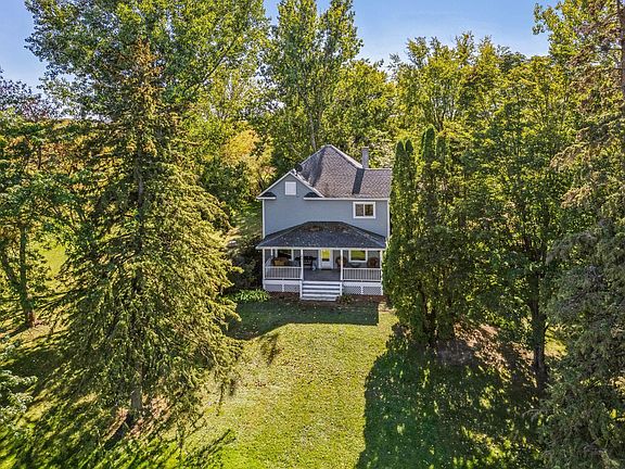 Nestled on a generous, 10-acre parcel of land surrounded by mature trees for ultimate privacy, this idyllic farmhouse boasts the character and charm of a refurbished and well-loved home. The open floor plan and multitude of windows allow for natural daylight to pour in creating a warm and welcoming atmosphere, while the old-style trim and refinished hardwood floors exude timeless charm and make the house shine. Oversized rooms on the main level allow for comfortable living and space for entertaining, including formal dining next to spacious kitchen with extra peninsula seating and recently painted cabinetry with updated hardware, cozy living room with new carpet, and a flex room for an office, playroom or additional living area. Plus, in addition to an updated ¾ bath with tub on the main level, a full bath upstairs services three bedrooms, including the master with a large, walk-in closet, and you’ll find tons of extra storage in the basement or in the large attic with potential for future finish. Outside, appreciate a large and welcoming front porch to sit and relax on or patio out back to take in the true serenity this property offers. Endless pasture and updated fencing allow for plenty of room for horses and cattle, and a 45x70 pole building has been converted into a horse barn with water, electric, four horse stalls with rubber floor mats and of various sizes, and ample space for riding and storage. Complete with a chicken coop, insulated two-stall garage with an extra stall/storage under the lean-to, thriving fruit trees, picturesque meadows and perennial gardens, this property has everything you’re looking for in your dream hobby farm. Improvements include new roof 2019, new septic 2020, new furnace and A/C 2020, new well pump 2023, new lean-to roof 2023, new 3-strand electric fencing 2023, brand new pressure tank, and more!