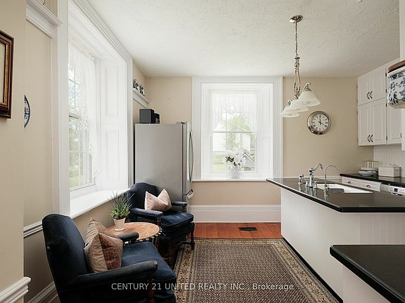 "A True Story Book Home", Built of Canadian Shield Stone on Canadian Shield bedrock, this CLASSIC fieldstone farmhouse was constructed by Scottish Settlers in 1842. This home is INCREDIBLE with 2 foot thick exterior walls. Once inside this CHARACTER home you will find so much original charm showcasing 4 bedrooms, 2 bathrooms and a double car garage. Wait until you see the spectacular grounds with mature maples, oaks and pines. Make your way to the backyard where the view will take your breath away...perennials, more natural flat rock patios, flowing streams and a gorgeous pine forest with cut walking trails so you can explore just over 3 acres of SERENITY. This home has both a dug well and a cistern... Perfect for economic efficiency! This is a once-in-a-lifetime chance to own a magnificent and appointed estate.
