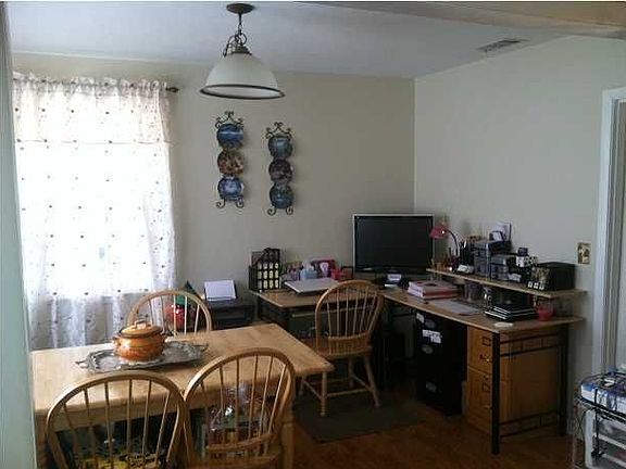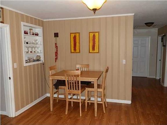 Mostly NEW!! New CHVAC, New architectural roof, New septic drain lines, New paint inside & out, New hardwood flooring throughout except ceramic tile bathrooms, Hall bath professionally refinished, New appliances, New cabinets.. really just a new house! Split bedroom- master currently used as den, has fireplace, private bath, and exterior door, 2 other bedrooms down the hall, good closet space, huge eat-in kitche, formal Living, formal dining room. Covered back patio and 5 AC of mostly wooded land.