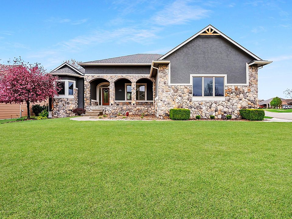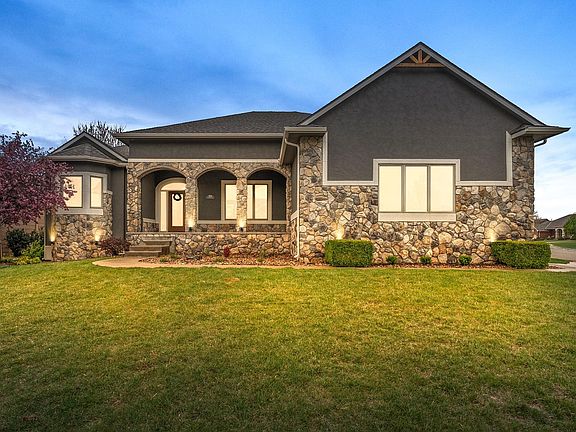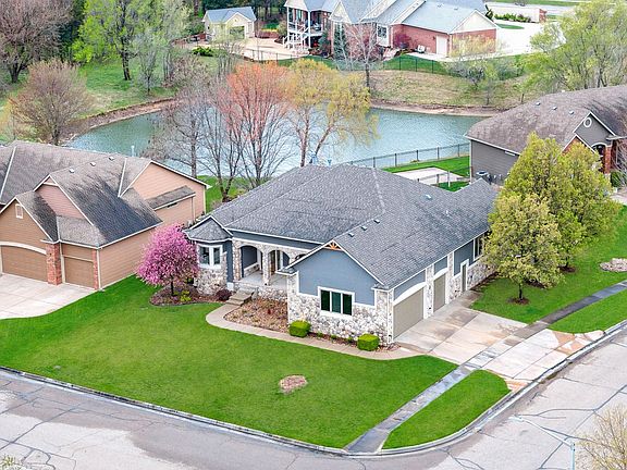 Back on the market at no fault of the seller! Welcome to your dream home redefined - a newly remodeled haven of luxury and comfort that exceeds the allure of any new build, without the burden of specials! This captivating home is situated in North West Wichita, in the desirable Fossil Rim Addition, and Maize School District. This 5 bedroom and 3.5 bathroom home boasts just under 4000 sq ft of elegance and comfort, featuring a split bedroom floor plan, providing ample space and privacy for everyone in the family! Step inside to discover newly installed hardwood floors flowing throughout, new elegant light fixtures, and newly painted walls that bring a breath of fresh air to the home. Prepare to be wowed by the stunning master suite that has been tastefully redesigned with new large tile floors, a fully tiled backsplash wall, a large soaker tub, beautifully tiled walk in shower, and 2 separate walk in closets! The heart of the home is the gourmet kitchen adorned with new quartz countertops and beautifully, newly finished cabinets and hardware. The additional kitchen-dining area and convenient eating bar is perfect for guests or larger families! Entertain with ease in the basement wet bar, while the walk-out basement offers additional space for relaxation and gatherings. You'll find 2 additional bedrooms, a half bathroom, and a full jack and jill bathroom with additional storage and 2 walk in closets! Outside, a large covered back deck overlooks the expansive backyard and private pond to enjoy your morning coffee or dinner al fresco. The oversized 3-car garage provides ample space for vehicles and storage. Enjoy access to the coveted Reflection Ridge golf course, the neighborhood swimming pool, and a private neighborhood fishing pond, offering endless opportunities for recreation and leisure. Plus, rest assured with the peace of mind of having a newer roof and gutters both installed in 2022. Don't miss the chance to own this exquisite home, where luxury meets the convenience of nearby shopping, amenities, vast dining options and schools. Schedule your showing today and step into the lifestyle you deserve! Seller to provide a home warranty to buyers at closing of buyer's choosing.