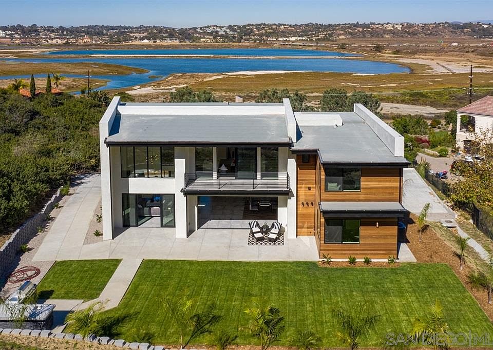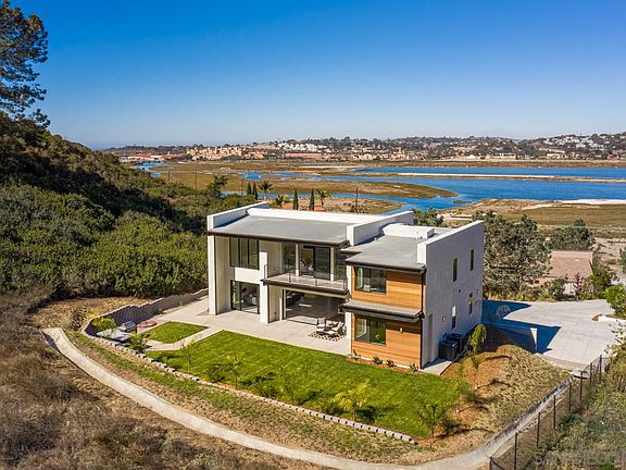 This is a rare example of a SoCal dream location, a near-acre estate with a coastal-rural feel that's still close to everything--it's west of the 1-5 and near the Del Mar Beach, Racetrack, and River Path, as well as tons of restaurants and world-class shopping. A stunning piece of custom contemporary architecture built in 2019, the property's modern home floats between magnificent views of the San Dieguito Lagoon and the hills of Crest Canyon, with peek-a-boo ocean vistas too. Clean-lined and minimal, rendered in concrete and wood with the utmost attention paid to every detail and luxurious finish, it's an extraordinary example of Del Mar indoor/outdoor living.