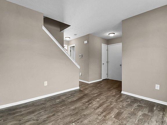 All neutral three-bedroom just waiting for your decorating flair! Covered front entry leads into nice, easy-care flooring and all white woodwork. Living room floor-to-ceiling brick fireplace with mantle is flanked by bookshelves. All white kitchen has stainless appliances. Eat-in area with sliding glass doors to rear yard. 1st floor powder room plus two full baths upstairs; one is in the Owner's bedroom. All neutral carpet on the 2nd level. Plenty of overflow parking in this driveway!