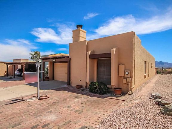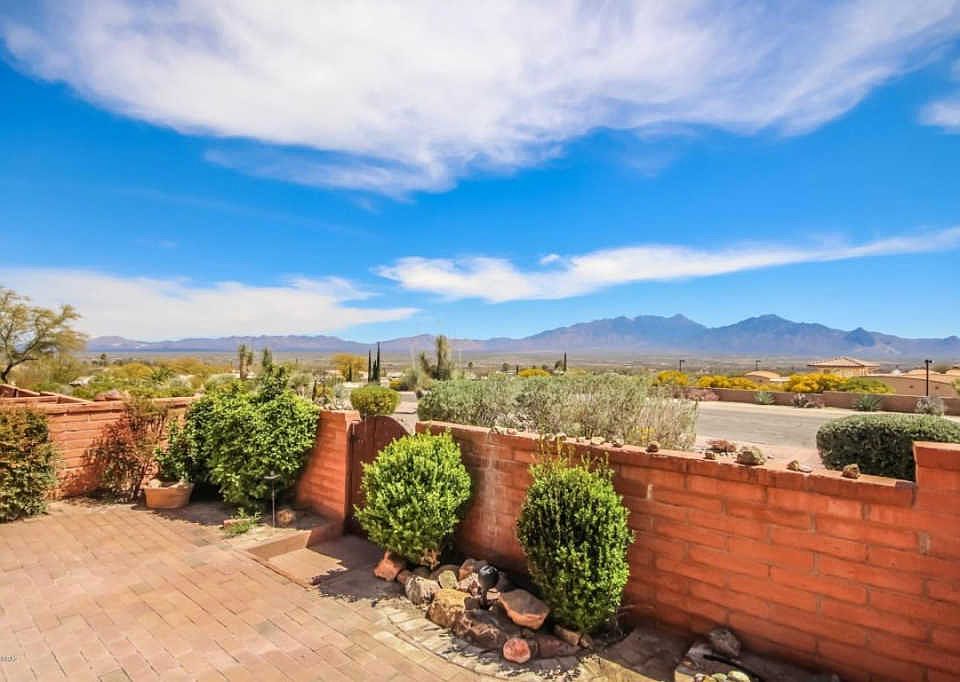If your looking for Santa Rita Mountain VIEWS! You just found them! Home features 2 BR / 2 Baths, Saltillo tile thru out traffic areas with new carpet in bedrooms & family rm., kitchen features corian counter tops, breakfast bar and plenty of counter / cabinet space, overlooking cozy family Rm. with fireplace, 2nd bedroom has Murphy bed, AZ. Room added with panoramic Santa Rita Mtn. Views and access from both bedrooms and hall. Bricked back yard with gate to extended yard with raised planters and more Views! Hard to find this nice a view at this price.