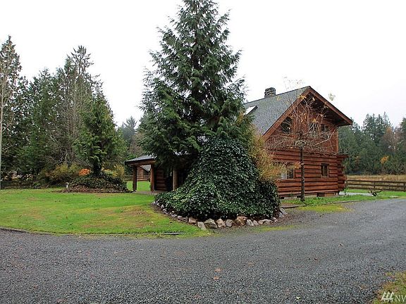 This wonderful log home is situated on a private 5 acre lot suitable for horses.Property includes fenced horse pasture, appx. 30x40 barn w/ water & power,2 stalls plus a tack room & plenty of storage.The living room has a dramatic floor to ceiling river rock wall w/open beam cathedral ceilings & a free standing pellet stove.From the beautifully appointed family room located in the loft to the 2 bedrooms + den this home is sure to please.Home ownership comes with 1/7th Pilchuck Creek access.