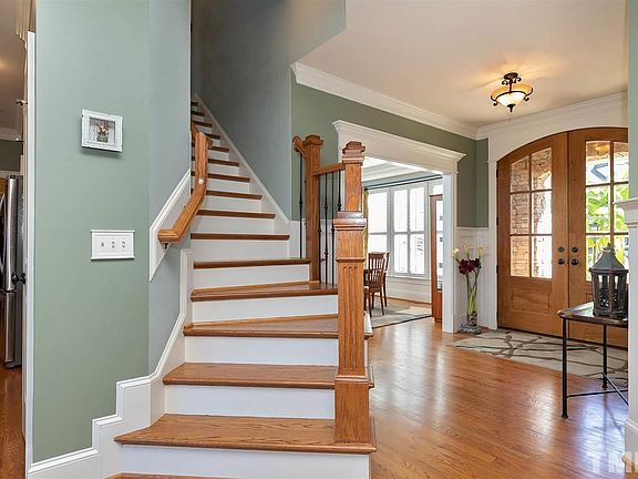 Serene, private, culdesac Haven backs to Neuse River and trail! Custom built, Open design boasts natural light, extensive molding, wainscoting, beadboard, builtin shelving, plantation shutters, granite & amazing back views throughout! Lrg finished 1st FL walks out to patio & path down to trail/river, & has ample storage for bikes, kayaks, etc. Huge floored, plumbed, walkup attic is waiting to be finished! Rm for workshop in garage. This immaculate, 'like-new', home is waiting for you! Convenient location!