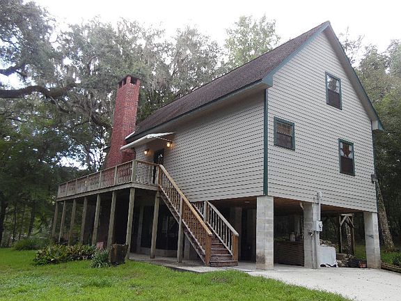 Perfectly peaceful home on the Ichetucknee! Modern kitchen with large great room and cozy stone fireplace! Large bedroom and bath downstairs with a roomy bedroom, bath and loft area (could be 3rd bedroom). Beautiful wood wall and floorcoverings with timbered ceiling. Take a stroll off the sun deck through towering trees on the elevated boardwalk to your very own dock overlooking the river. Great swimming area for the entire family - floating dock attached to main dock that rises and falls with the river. Roomy storage shed with loft area for your tubes, kayaks and canoes. Downstairs features a screened outdoor living room with a lovely fireplace to enjoy great family times. Bring the family!