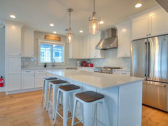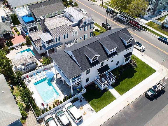Are you looking for a Large beach home where you can walk to all of Stone Harbor's best attractions? Well take a look at this 6 bedroom, 4 full tiled custom bath and 2 powder room home. Situated on a corner 60 x 110 lot this property has over 3200sq ft. of living space. Some of the extras include hardwood floors throughout, wainscoting, shiplap bed and living area walls, Upside down style layout, a custom built in bunk room, Large lavishly tiled and appointed baths. A huge great room with vaulted ceilings a custom kitchen with granite counters and stainless appliances and center island. A huge covered second floor deck. The family room downstairs leads to a large pool area with plenty of lounging room. Nicely landscaped and fully furnished and decorated. This property in an excellent opportunity for a rental investment property will easily gross over $135,000.00 in summer rents.