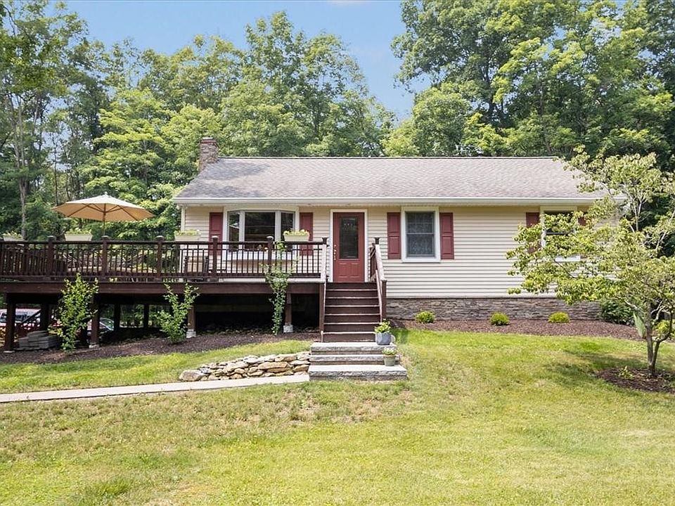 This Lovingly cared for Ranch on a beautiful winding road close to everything is a must see! It is so comfortable and cozy, yet has so much growth potential! Enter the front door from a Huge wrap-around deck to a bright and lovely Living Room w/a Bay Window, Dining Area w/Giant Anderson Sliders out to deck and a fabulous updated kitchen w/Granite, SS and an Island. The Primary Bedroom has a private powder room. 2 additional ample sized bedrooms and a beautifully updated Full Bath complete the main level. Downstairs you will find finished storage waiting to be lived in. Upstairs is a very large Attic Space...bring your vision! Outside is private and park-like. There are New Gutter Guards with a Transferrable Warranty, less maintenance for you. The Electric has been upgraded. High Quality Anderson Windows throughout...just move in and enjoy....close to the Taconic, Shopping and all the Hudson Valley has to offer!! Additional Information: HeatingFuel:Oil Above Ground,