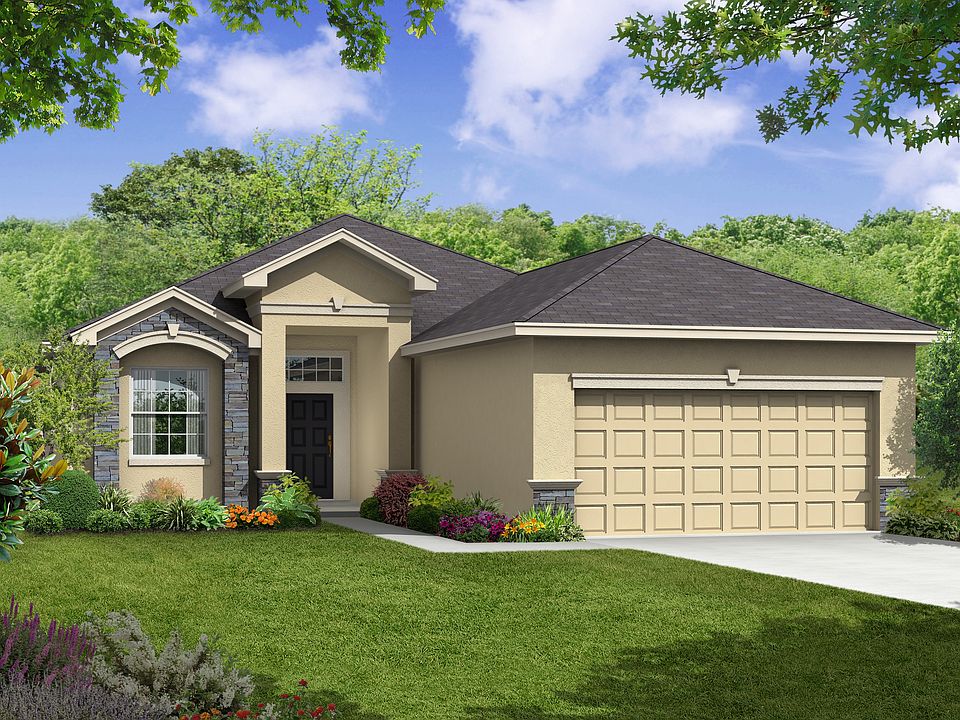 The Alexandria offers lots of space for a growing family. The formal dining room, directly off the airy entry foyer, is great for entertaining a few friends or hosting large holiday dinners. The great room has a dramatic space and large sliding glass doors that open out to the covered lanai. The kitchen is a place where everyone will gather, and offers ample counter space, a charming breakfast nook and also providing convenient access to a utility room that has itself an access to the two-car garage. Also tucked discretely away are double doors that open to a private den at the entry of the great room. The master suite is the peak of this home with a private access to the lanai, and a private bath completed with a separate tub and shower, and a private walk-in closet.