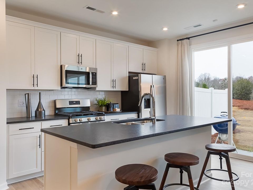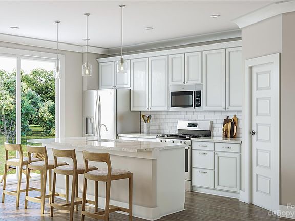 The kitchen has been upgraded with a 30? gas range, elevated stainless steel appliances, white cabinets, suede gray backsplash tile, all tied together by the stunning Helix quartz counter tops. The great room and dining room then flow together into the 6' sliding glass door in the back connecting you the outdoor living space overlooking mature trees.