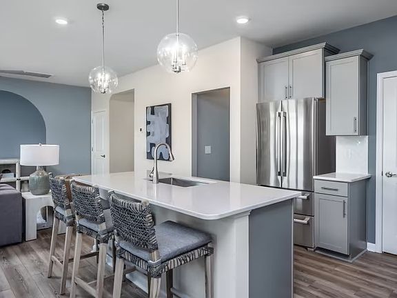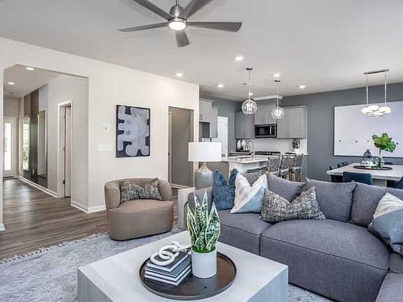 Brand new modern, townhome with an open and spacious floor plan, Primary suite boasts dual vanity, quartz counters, and walk-in shower.