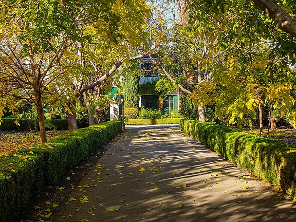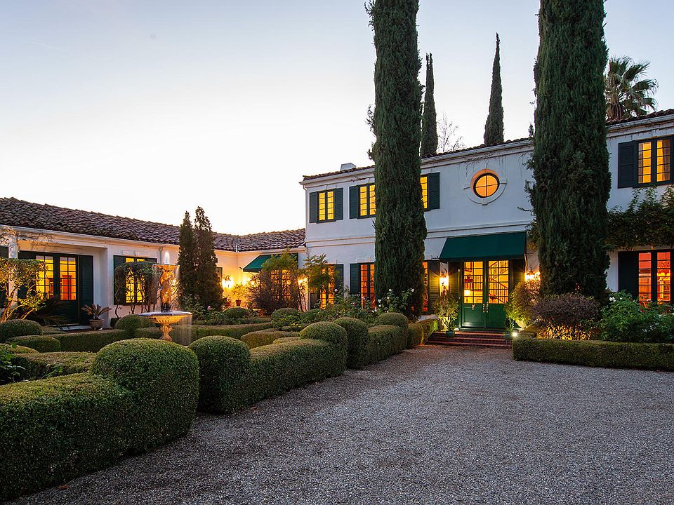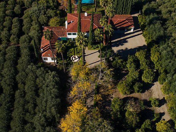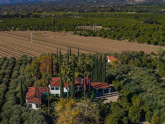 Secluded. Private. Peaceful. Safe. Nearest neighbor? 15 acres away. Shops and restaurants? 3 miles away. This beautiful estate is nestled in groves of olive and citrus in the heart of the iconic Ojai Valley. A beautiful escape from the city, this striking Italian villa is surrounded by the Topa Topa mountains with a perfect view of Ojai's famous 'pink moment' every evening. On 12.6 flat acres, the Omaggio Estate features a picturesque tree-canopied drive; mature shade, palm and Italian Cyprus trees; oranges, grapefruit, guava, apple, fig, walnut, and five varieties of mature imported olive trees. A park-like setting of formal gardens featuring lavender and rosemary. Large imported fountain greets guests at the front. In the back, an ample yard and pool. Abundant natural light throughout the house with mountain and valley views from every window of every room. Interior: 30, 16, and 12 ft ceilings; formal dining room; library; 3 wood-burning fireplaces; 7 bedrooms; 7 full baths, 2 half baths; a bonus/flex room; large living and family rooms with French doors opening to front and rear patios and gardens. Three-car garage; Tesla charger; hot tub; olive mill; outbuilding/potential rental unit. It's time to get away.