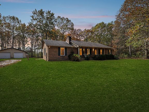 Rare opportunity to own a serene, all-brick 2 bed, 2 bath home on 21 acres of picturesque land. The inviting family room features built-in shelving and a cozy wood-burning fireplace, perfect for gatherings or quiet evenings. Durable laminate floors span the main living areas, giving the home a warm and low-maintenance appeal. A separate kitchen offers an eat-in dining area, ideal for morning coffee or family meals. The primary bedroom includes a generous closet and an en suite bath with a step-in shower. Practicality meets versatility with a 1-car attached garage and a 2-car detached garage/shop, ideal for vehicles, hobbies, or extra storage. The property is conveniently serviced by city water and also includes a private well, adding value and options. One car attached garage could be converted into a 3rd bedroom. Sitting on a rare double-lot of 3 acres within the subdivision, the property also includes two additional 1.5-acre subdivision lots for a total of 6 acres. Beyond this lies an additional 15 acres, providing a total of 21 acres with endless possibilities. Imagine creating your dream homestead, expanding for family, or exploring the potential for development. Due to the layout of the property, the land has two different road frontages. The possibilities are endless with this property. This property offers a unique blend of peaceful living, privacy, and potential – all while being close to local amenities. Don’t miss the chance to make this rare, versatile property yours!
