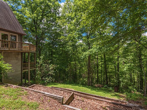 Move-in ready for summer! A-frame chalet with seasonal lake access on Norris Lake, sit on two wrap-around decks and enjoy views of the mountains and lake. Buyer to verify dockability with TVA. Master on main with Jacuzzi tub. Finished walk-out basement can be utilized as rec room, family room, and bonus room! Perfect as a primary residence or weekend get away! Detached garage has additional storage space.