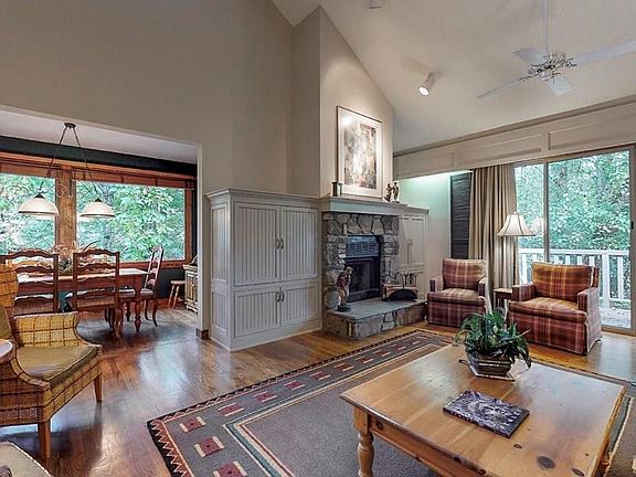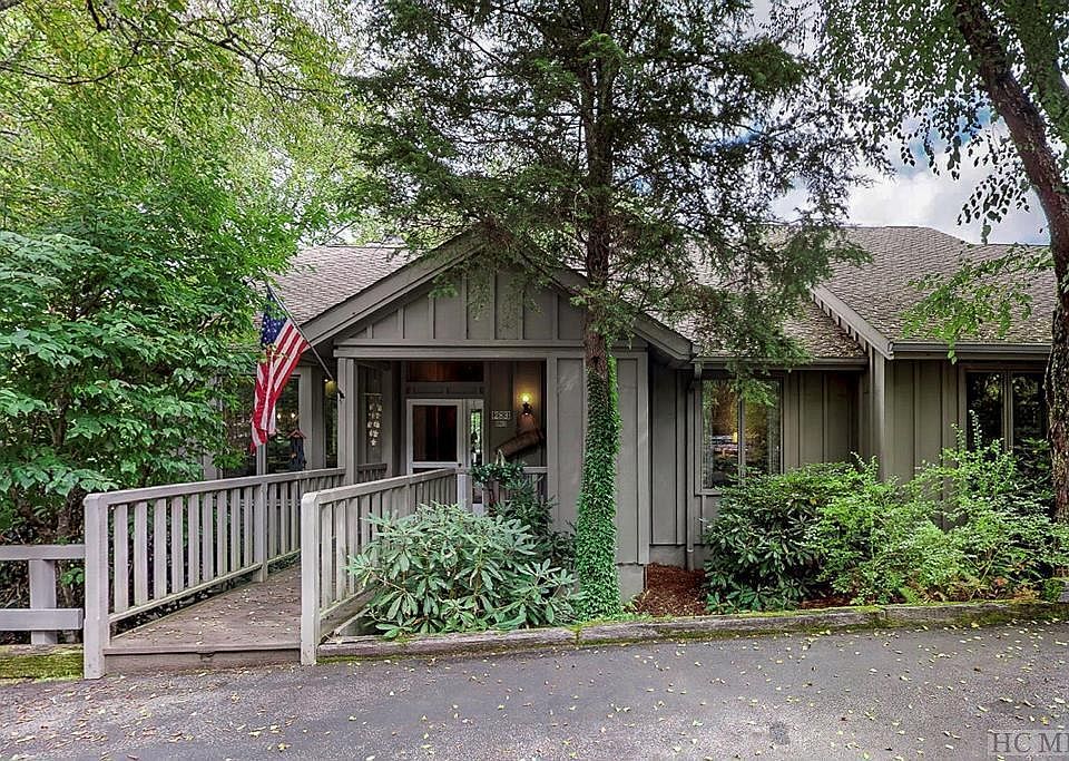 Fully furnished and ready to enjoy, this three-bedroom, three-bath condo at Highlands Falls Country Club has easy access with only one step into the main level and plenty of parking right in front. The owner has enclosed the side deck and made it into a spacious dining room surrounded by glass on three sides giving you the feel of alfresco dining. The great room has cathedral ceilings with a high transom window and a wood burning fireplace with custom built-in cabinetry. The eat-in kitchen also has a vaulted ceiling with plenty of cabinetry and countertop space. The master is large and has an office alcove that everyone today seems to require. There is a gracious guest suite on the main floor and the upper level contains the third bedroom suite plus an artist's niche and a great storage room. Highlands Falls offers golf, tennis, swimming, pickleball, croquet and a great social life for members. Social or Golfing Membership to Highlands Falls Country Club is not required but available.