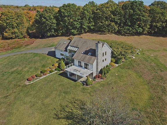 Spacious custom-built luxury home on 12+ ac. 2 lots included! Bright, sunny and light w/10 skylights and custom 3-story greenhouse. A master bed/bath suite features glassed-in shower, 6' Jacuzzi, marble floor and 19' master closet. Open concept kit/dining area with sunken LR w/gas fireplace. Spacious office space w/greenhouse. Lower living level has 2 BRs and a full bath. Wet bar w/wine fridge, built-in cabinetry and greenhouse complete this level, ready for entertaining, wired thru-out for sound. 2 bonus areas: sunny room above garage w/2 separate 20' built-in cedar closets & large loft area w/skylights, both easily converted to bedrooms. Long paved drive leads to close but secluded gem w/sweeping views of Kitatinny Ridge. Beautiful fields and wooded grounds make this estate a must-see!