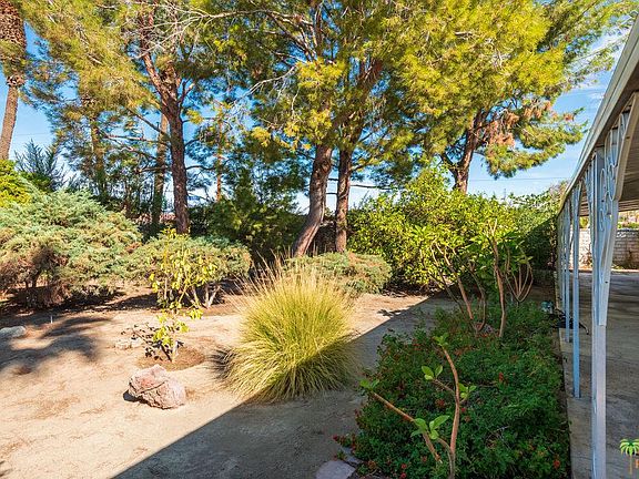 Welcome to The Canyon, a beautiful 55 Plus community centrally located to all the desert has to offer for seasonal or year round living. This 3 bedroom 2 bath home is situated on one of the premier lots in the community featuring a private expansive side yard off the living room patio with a mountain view for your enjoyment and entertaining. The floorplan features a large kitchen and breakfast bar open to the dining and great room. Great separation of bedrooms with the master suite and guest bedrooms at opposite ends of the home. The 3rd bedroom/office is set up as a study with a wall of bookcases. There are two storage units behind the carport. This home is a must see and can be purchased turn key if desired. The Park requires that buyers become pre-approved prior to residency. They require a monthly income of $2520 and a credit score of 740 plus. This beautiful is back on the active market as the buyer could not qualify.