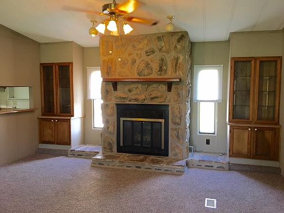 Located less than a block from schools, this 4 bedroom, 2 bath home has a rock log fireplace w/built-ins, new carpet & paint, and detached carport and garage. Large covered front porch, level lot, fenced back yard.