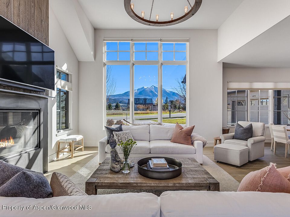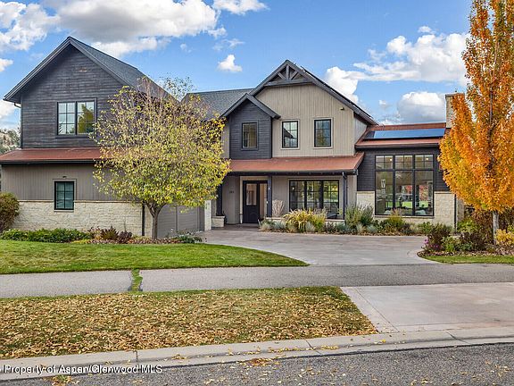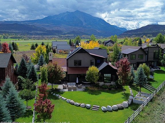 Welcome to your mountain-modern retreat in the heart of River Valley Ranch, where sleek design meets the natural beauty of the Roaring Fork Valley. This custom-built home showcases exceptional craftsmanship and thoughtful details throughout - every inch designed for comfort, style, and functionality. Step inside to discover white oak engineered hardwood flooring that flows seamlessly through the open-concept layout. The living room features vaulted ceilings and large windows that flood the living and dining areas with natural light while framing unobstructed views of majestic Mt. Sopris. The gas fireplace, surround sound system, and floating accent shelves with ambient lighting create a warm yet sophisticated living space. Main floor primary bedroom with oversized walk-in closet and center island. A private office/bonus room upstairs offers inspiring Mt. Sopris views—perfect for working from home or quiet relaxation. The attention to detail continues with top-down, bottom-up Hunter Douglas Venetian blinds, ample intentional storage, and a fully finished garage featuring epoxy flooring, custom cabinets, slat wall organization, bike racks, and overhead storage. Step outside to enjoy curated floral gardens, a fenced backyard, and an inviting outdoor patio with a custom fire pit—ideal for entertaining or peaceful evenings under the stars. Eco-conscious living comes easy with owned solar panels and a Tesla storage battery for energy efficiency and sustainability.