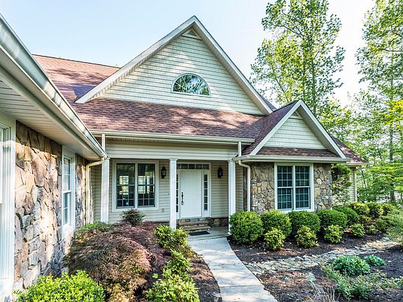 Enter the subdivision through the covered bridge to your custom-built home. Whether boating on the lake or relaxing inside or on your balcony-decks, enjoy awe-inspiring lake and wooded ridge views from eight of nine rooms. Open floor plan - 7 doors to access the outdoors. 23 windows provide beautiful views. Great room features floor to cathedral ceiling stone fireplace and access to balcony overlooking water. Split bedrooms. Master bedroom features trey ceiling and access to private balcony; the master suite features spa tub, separate shower and walk-in closet. Spacious kitchen, with two islands is ideal for food prep and entertaining. Appliances included are refrigerator, gas stove with self- cleaning oven, dishwasher, convection microwave and garbage disposal. Adjoining (see More)