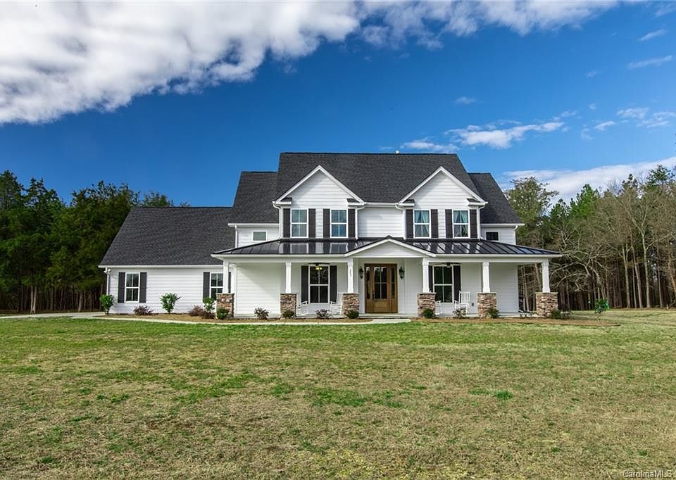This luxurious custom-built 4BR 3.5BA 2-story home, located on a private 25 acre estate lot is breathtakingly beautiful. No need to settle; this modern farmhouse is sizeable, with a perfectly balanced open floor plan and outdoor space. The gourmet kitchen is a conversation piece and the granite island is a show stopper! A beautiful vaulted ceiling in the great room extends out to the vaulted rear porch creating a dramatic effect with views. The architects and designers created the perfect flow for natural light to flood in, coupled with a gorgeous solid wood front door. The nearly 1,000 SF of open porches on the front and back provide extended living space and is ideal for social gatherings. The magnificent panoramic year-round views simply take your breath away! All of this is minutes from Lake Wylie, dining/shopping and a short drive to Uptown & airport. Located within award winning Clover School District! Bring your Horses – 15 ft wide trails with several creeks. Low SC Farm taxes!
