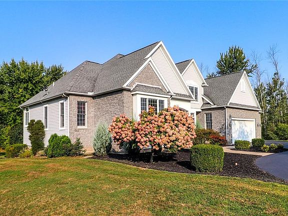 This gorgeous home will take your breath away! You and your guests will be impressed from the minute you walk into the grand entryway with its elegant chandelier, and the open staircase that leads your eye around the 3,344 Sq. Ft. home's open floor plan. You'll love hosting in your spacious eat-in kitchen with floor to ceiling windows, sharing meals in your wood-floored dining room with a stunning floor-to-ceiling bay window, and cozying up around your living room's gas fireplace during Rochester winters. You'll enjoy spending all your summer evenings on your deck overlooking your 10+ acre property which Northrup Creek runs through. With 4 bedrooms and 2 ½ bathrooms, including a primary suite with a walk-in closet and jacuzzi bathtub, you'll have all the space you need for your family! Other amenities include an office, an attached 3-car garage, and an extra unfinished bonus room to make your own.
