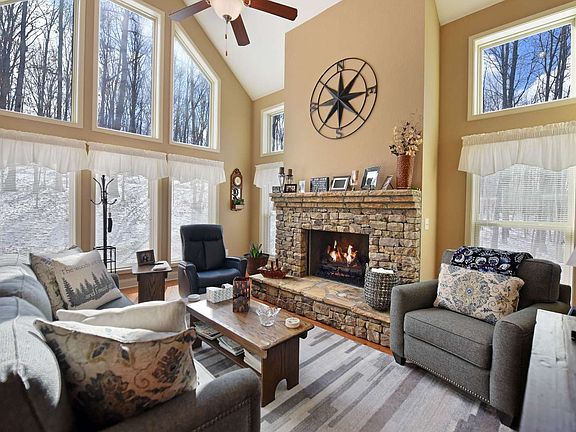 Like new ranch style home on very easy to manage wooded lot with seasonal long range views of the north Georgia mountains. Extremely well maintained with easy access on paved county road. Beautiful great room offers cathedral ceilings, extra windows to allow great light, stacked stone gas log fireplace for instant warmth on cool mountain evenings, spacious eat in kitchen with custom cabinets, granite countertops, walk in pantry and stainless appliances. Master bedroom is spacious and includes walk in closet and private bath. Rear deck is roomy and offers both privacy and nice mountain views. Detached garage is in very close proximity to front porch and could easily be joined by adding a short breezeway. Massive crawl space could be converted to a basement easily, and has a 12 foot ceiling. Ideal for storage or could make a nice workshop.