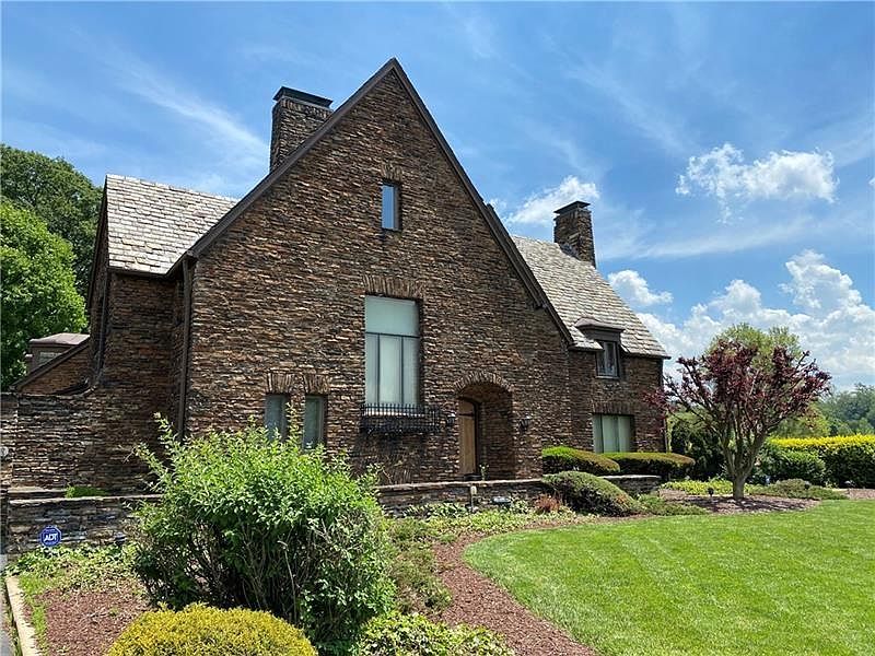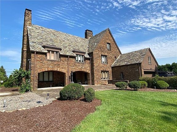 Welcome to 283 Derrick Ave. This One of a Kind grand home is situated on a premier lot adjoining Uniontown Country Clubs golf course. This stately home was built in 1920 and was a creation of architect, Robert Fulton renowned for his stunning cathedral designs. The home boasts 5 Bedrooms and 3.5 Baths, a finished 3rd floor with wet bar, card room and billiards room. Original features include a spacious slate tile entry, decorative iron staircase railing, wide plank oak hardwood floors, plaster walls with crown molding, unique front door with stained glass accent, living room sconce lighting and ceiling fixtures, original fireplaces, all interior original solid wood doors have been refinished and are highlighted with unique hardware, plenty of closets with custom built ins. The exterior rear patio can be accessed from both the dining and living areas and features lovely stone arches with picturesque views of the golf course which calls attention to the gorgeous mountain backdrop.