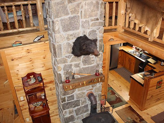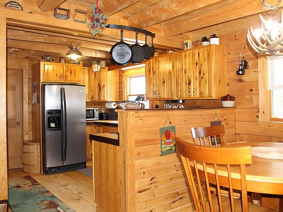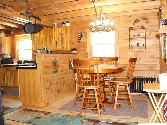 Nestled in the woods on 14 acres, this cozy log home features traditional rounded logs, wide plank wood floors, cathedral ceilings, and a beautiful stone chimney with a Vermont Castings wood stove. The main level features a full kitchen with hickory cabinets, dining area, living room and a master bedroom and full bath. The second floor has a loft style bedroom and sitting area open to the living space below. The full, walkout basement offers plenty of storage space, a Bederus boiler, and brand new Ultravation Aquatronic UV water treatment system. Septic system has been pumped and inspected and the well pump is also brand new. Beautifully decorated in rustic decor, most furnishings will stay, making this move-in ready! Has also been used as a profitable airbnb with high demand. Just minutes to Lake Bomoseen and area restaurants and just a short drive to Rutland and Killington. Come see where home could be!