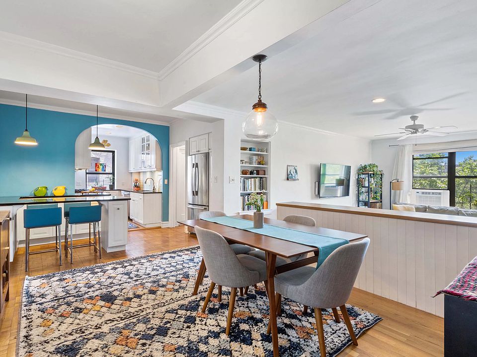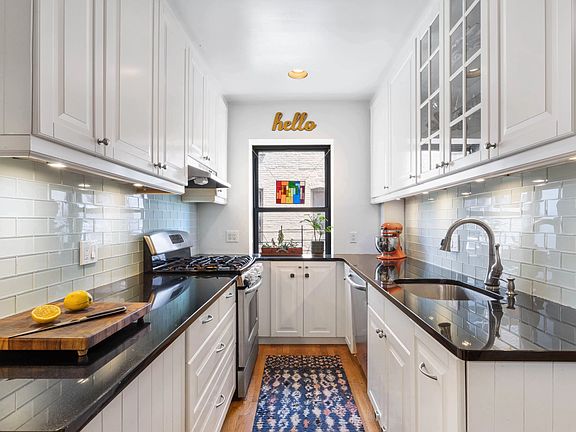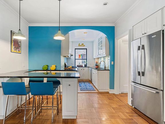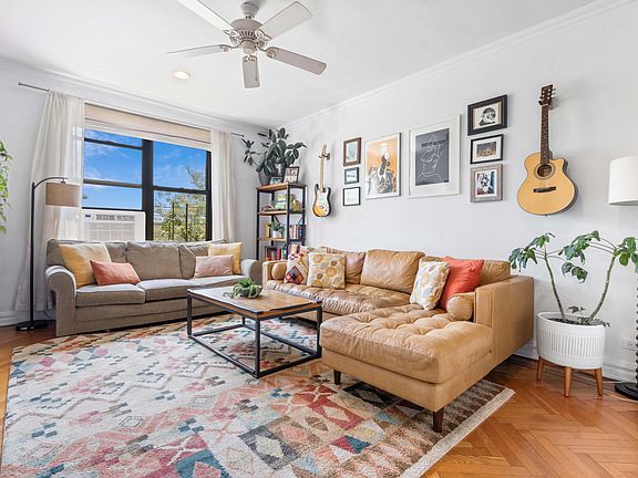 Overlooking a quiet, tree-lined block unit 5B at 283 East 5th Street is a large, open and bright, legal 2 bedroom, two bath corner residence, currently being used as a 3 bedroom. This home is located in an exquisite pre-war, Art Deco, coop elevator building in charming Kensington. As you enter through the foyer, after hanging your coat in the entry closet, you are greeted by the large, light-filled, open living area. The windowed, modern, highly functional kitchen has generous cabinets and a peninsula ideal for eating breakfast. A large, separate, dining area is perfect for entertaining and flows effortlessly into the sunken living room with gracious pre-war details and windows facing sunny, bucolic, Albemarle Road. The split layout with the two smaller bedrooms and one bath with tub on one side and an extra-large bedroom with ensuite bathroom with shower on the other side offers optimal privacy. Other attractive details throughout include original herringbone floors, an arched doorway, five large closets and ten windows for optimal light. Separate storage space included with unit, as well as bike storage in basement. The building is impeccably maintained with live-in super and card-operated laundry in the basement. Building is wired for Fios and Optimum. Near the F/G trains and express bus to Manhattan. Many favorite neighborhood restaurants, coffee shops, yoga studio and other amenities all nearby. Just blocks to Greenwood Playground, P.S. 130, bike paths and beautiful Prospect Park! Cats are permitted, and dogs upon approval.
