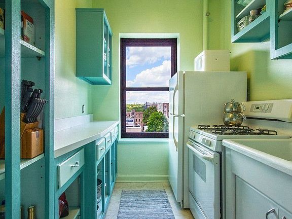 This spacious one bed one bath unit has plenty of moxie. After strolling into the beautiful original detail art deco building and heading up in the elevator to the top floor, you're home. Hang your hat in one of the front gallery closets, then step down into your sunken living room with 10' ceilings to unwind. The open layout provides a harmonious transition between living room, gallery, dining area, and kitchen, giving the space an inviting ambiance. Small details, like original parquet flooring, add to the appeal of this light filled home. As a corner unit on the highest floor, 6C has arguably the best view in the building. You can see the Manhattan skyline as well as the lush treetops of Brooklyn looking out from any of the west facing windows (living room, kitchen, bathroom, and bedroom). Aside from the two gallery closets, you'll find more closet space in the hallway and bedroom. This ideally located Kensington co-op is minutes away from the F/G Church Ave stop as well as local and express buses. It is on a peaceful block that is only a short walk away from Prospect Park and conveniently near many choices of restaurants and shopping. The well maintained pre-war building has a live in super and the basement level has communal storage, bike room, and laundry. All information furnished regarding property for sale, rental or financings from sources deemed reliable but no warranty or representation is made as to accuracy thereof and same is submitted subject to errors, omissions, change of price, rental or other conditions, prior sale, lease or financing or withdrawal without notice. All dimensions are approximate. For exact dimensions, you must hire your own architect or engineer.