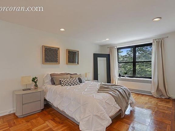 Sun-Filled and Spacious 2 bed, 2 bath Pre-War, Art Deco Co-op in Perfect Kensington Location! Currently set up as a 3 bedroom home, this well proportioned, sunny, corner apartment is open and airy with generous pre-war sized rooms and detail. Original herringbone floors and 11 foot ceilings grace the spacious and sunken living room, creating a dramatic and inviting space. 10 foot ceilings and parquet floors throughout the apartment. The apartment boasts windows in every room, including both full sized bathrooms, and kitchen. Out of every window, you will find tranquil views of sky and trees. The serene master bedroom can easily accommodate king sized furniture, and is complete with an en-suite full sized bathroom. The large bedroom in the back has been beautifully altered to create 2 windowed bedrooms, for a total of 3 ~ one bedroom easily allows for a full size bed and desk area, and the smaller bedroom works perfectly with a single bed, or as an office. You can choose to keep this fully functioning design, or easily opt to bring back to its original configuration. The entry foyer is grand by design, allowing additional living space to utilize as you like. Generous closet space abounds, including a 7 foot entry closet in the foyer, to easily maintain a fully organized home. There is a separate dining area that flows into the windowed kitchen - with dishwasher and microwave - creating all the space you need. This beautiful, elevator building, is ideally located on the corner of quiet Albemarle Road and East 5th Street. This terrific location provides easy access to F/G trains on Church Avenue ~ 3 blocks away ~ local buses, and the express bus to Manhattan. It is 2 blocks to Greenwood Playground and P.S. 130. Ocean Parkway provides a short walk to Brooklyn's premier playground ~ Prospect Park, or a fun and easy bike ride to the beach at Coney Island. Shopping, restaurants and amenities, all conveniently close by. This professionally managed building is impeccably maintained with a live-in super. The building's basement level provides common storage, bike storage and a central laundry room with card-operated machines. Cats are permitted, and dogs upon approval. This apartment is sure to please! Open House ~ Thursday, June 9th ~ 5:30 - 7:00 pm.