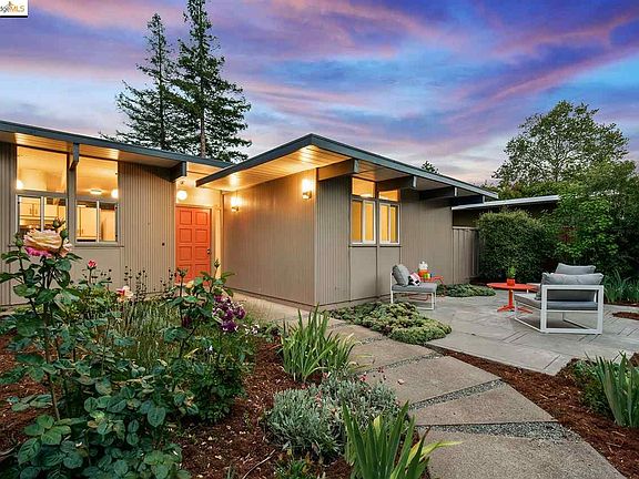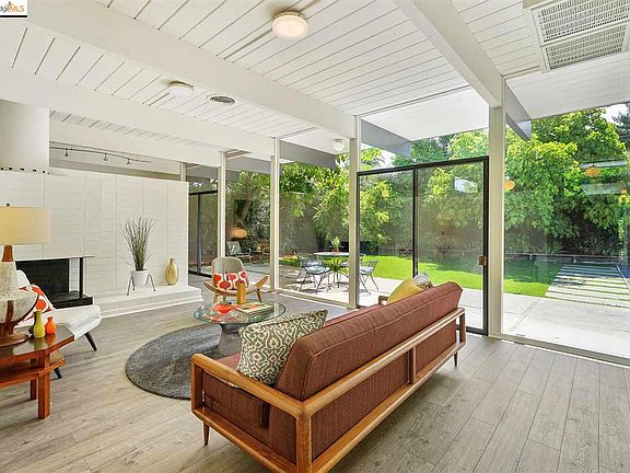 Experience the best of indoor/outdoor living in this charming turnkey Rancho San Miguel Eichler! Floor to ceiling walls of glass in the open living areas & master suite with level stepouts to spacious gardens make the home perfect for entertaining or simply just living as one with nature. There's a sunny front courtyard off the kitchen for morning coffee, and a spacious backyard with raised garden planters and a lush lawn, prime for enjoying the fantastic sunny Walnut Creek microclimate. Updated baths, foam roofing, HVAC, and new flooring throughout! Mid-century charm in a neighborhood with sidewalks, parks, a shopping center within walking distance, award-winning schools, and fast access to BART & major transit routes. A perfect modern California lifestyle!
