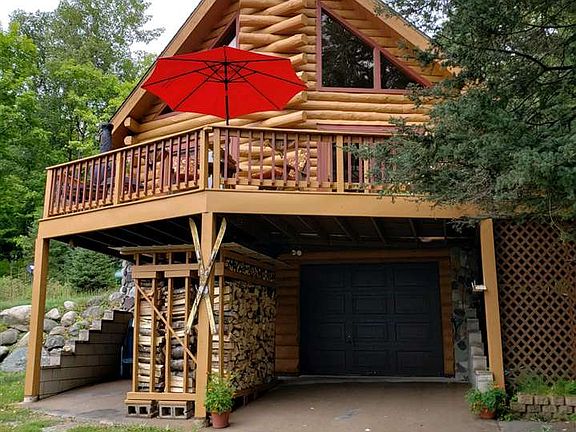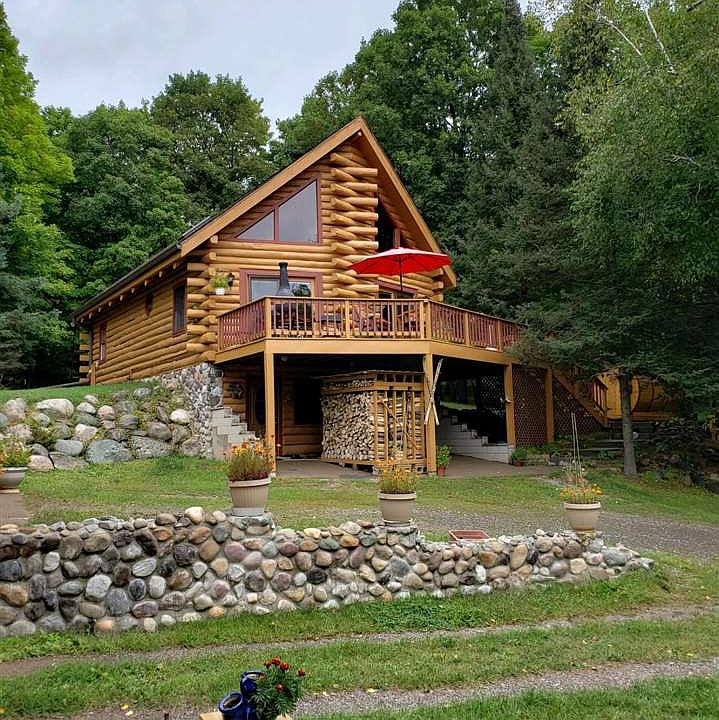REDUCED! 300' Fire Lake Frontage! This amazing year round D-Log home sits on 7.7 mostly wooded acres. Known for great fishing, Pristine Fire Lake is 40' deep and 128 acres in size. While there are neighboring seasonal homes, this one offers plenty of elbow room and privacy. There are many amenities and creature comforts for your up North heart. The spacious main level master bedroom with walk-in closet. The 23' x 24' loft area that overlooks the great room below with triangle shaped windows on the prow front, allows plenty of natural lighting and views of the lake. The upstairs loft bath has a jetted tub with built in shower sprayer. The main level consists of a renovated kitchen/dining area boasting granite counter tops and some stainless steel appliances, walk-in pantry, while transforming to a more open concept floor plan. Hardwood, ceramic and carpeting blanket the floors. Not to mention the handcrafted personal details throughout the home. There is ample storage throughout the home. The walkout/partially exposed basement features an area for sleeping, a huge finished entryway, the 10' x 22' drive under garage and the spotless utility/mechanical room, all appropriately separated. The outdoor barrel sauna fits in tastefully with the colorful landscaping, which will be enjoyed on the wrap around deck with two French door entries. Fella's, there are multi-use outbuildings for all your storage or workshop needs. Reasonable offers considered! Qualified buyers, welcome home!