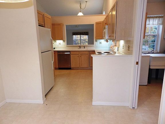 Lovely private setting backing up to the woods, this 2 bedroom 2 bath condo is affordably priced so that you can make paint and flooring choices when you take occupancy. Convenient one level living with vaulted ceilings and gas fireplace, separate breakfast nook. Master suite with walk-in shower, double sinks, walk-in closet. Full basement for storage. Association cuts grass, shovels snow, plows roads.