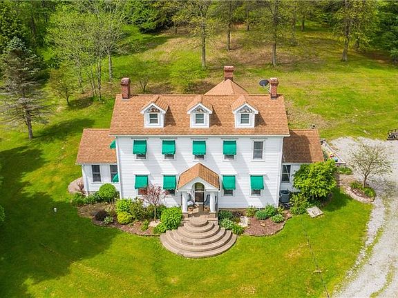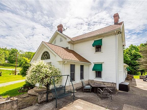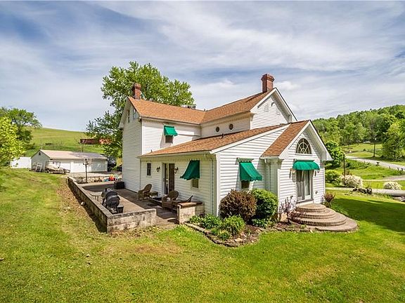 This exceptional 1878 colonial homestead is filled with character & charm. The owners have taken pride in caring for & updating this wonderful property. Gorgeous cherry hardwood floors, banister, crown moldings, custom wood wainscoting, stained glass & built-ins throughout the home. Every room is generously sized. Flanking the entry are the family and living rooms. The main level also holds the dining room, kitchen with adjoining eating area, den, full bath with claw foot tub & 3 season room. Entertain family & friends on the large back patio just off the kitchen. The 3 bedrooms are located upstairs. Master has one of the 3 gas log fireplaces. The 2nd bedroom is a child's dream with lofts holding built-in dressers. Furnace & AC 2019, roof 2015, 3 car detached roof 2019, updated bathrooms plus much more! The best of both worlds awaits you - the peace and calm of a private 5.5 acre country setting but a short drive from the amenities & entertainment of Washington & WV.