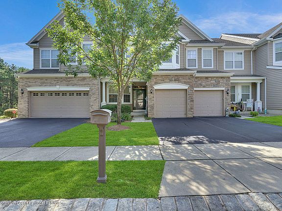 Sought after luxury townhouse in the Whispering Hills community of Barnegat! Take advantage of the maintenance free lifestyle in close proximity to the GSParkway, schools, shopping/dining and the attractions & beaches of LBI just a short drive away. Covered entry leads to open concept with plenty of natural light, 9' ceilings, kitchen/living/dining with custom 42'' cabinetry, large island w breakfast bar. Slider leads to deck overlooking the woods and walking trail! Half bath and study/4th bedroom also on 1st level. Upstairs the spacious bedroom suite has a tray ceiling, walk-in closet, en suite full bath with double vanity & large stall shwr & jetted tub. 2 additional bedrooms, full bath & laundry on BR level. Full bsmt with extra half bath & direct entry garage check all the boxes!