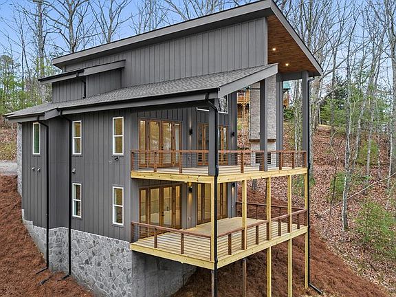 Stunning New Craftsman Mountain Home with Long-Range Blue Ridge Mountain Views!!! Experience breathtaking long-range mountain views from this newly built Craftsman-style mountain modern home, thoughtfully designed inside and out. The elegant chef's kitchen features sleek granite countertops and high-end stainless steel appliances, perfect for cooking and entertaining. Well designed Tile bathrooms/showers with granite counter tops adjoining their own private bedroom. Bedroom and bath on each level, this home offers privacy and comfort for all. Half Bath on main level for guest. The fully finished basement includes a wet bar, adding to the home's entertainment appeal, and a bedroom, bath and rec room/den area. Step outside to enjoy the expansive covered porches and an outdoor wood-burning fireplace—ideal for cozy evenings in the crisp mountain air. Located just 15 minutes from downtown Blue Ridge, you'll have easy access to fine dining, the Toccoa River, Lake Blue Ridge, and endless hiking trails. Whether you're seeking a peaceful retreat or an adventure-filled getaway, this mountain masterpiece is the perfect escape! This could be a perfect investors income producing rental as well. This home will not disappoint.... (Furniture package can be discussed; builder has a interior decorator/designer from the Atlanta area) (Seller is willing to discuss Buy down on Buyers interest rate if obtaining a loan) (Go thru My Mtn Subdivision paved rd gated community but is NOT a part of the HOA) (Please note GPS will take you to home the wrong way; must use realtor directions). Additional fireplace being installed inside the home.