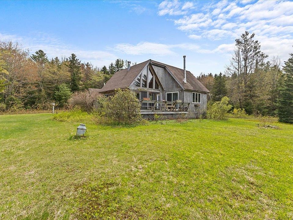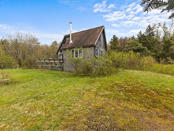 Nestled on 30 acres of pristine wooded land in Wolcott, Vermont, this charming seasonal chalet-style camp is a perfect retreat from the hustle and bustle of everyday life. The property features a vast, open landscaped front yard, offering serene nature views and woods to explore. A short drive leads to Wolcott Pond, an ideal spot for cooling off and enjoying the warm summer months. Inside, the 1.5-story layout boasts cathedral ceilings in the living room, highlighted by large floor-to-ceiling windows that bring the natural surroundings inside and showcase stunning mountain views over the thriving forest. A wood stove adds coziness to the main living space, perfect for warming up after a day at the lake. The loft space serves as an ideal child's bedroom or guest quarters. The kitchen, with some repairs and upgrades, will be well-equipped to prepare delightful camping weekend meals. The spacious primary bedroom features high cathedral ceilings, closet storage, and another wood stove for added warmth. The property runs on a generator for electricity, and the overhead lights are propane-powered, giving a charming, rustic feel reminiscent of stepping back in time.