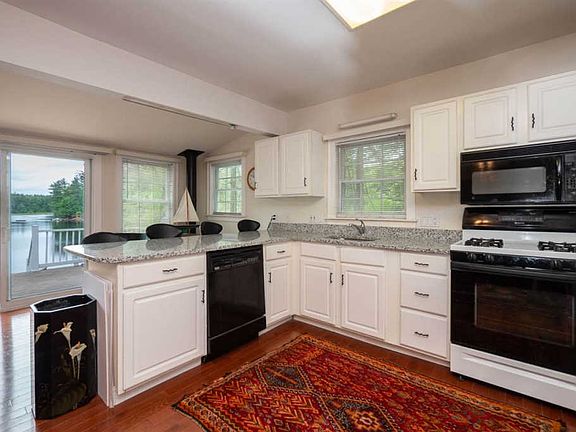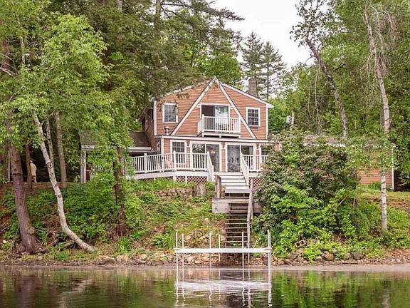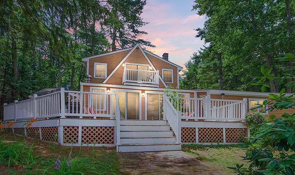 Panoramic waterfront views of Long Pond await at this beautiful 2 bedroom home. Enjoy the great outdoors on the large wrap-around vinyl deck and walk just steps to the private dock to take in the view of nearby conservation land or go out for a fish. First floor features amazing views of the pond through sliding glass doors, open concept living room and kitchen with new granite counters, hardwood floors, full bath with laundry and bedroom/office. Second floor is home to a large Master bedroom ensuite with walk-in closet and private deck. This is a year round waterfront property ready for you to enjoy! Five minutes to Kingston State Park, twenty minutes to Epping, NH and thirty minutes to Portsmouth, NH